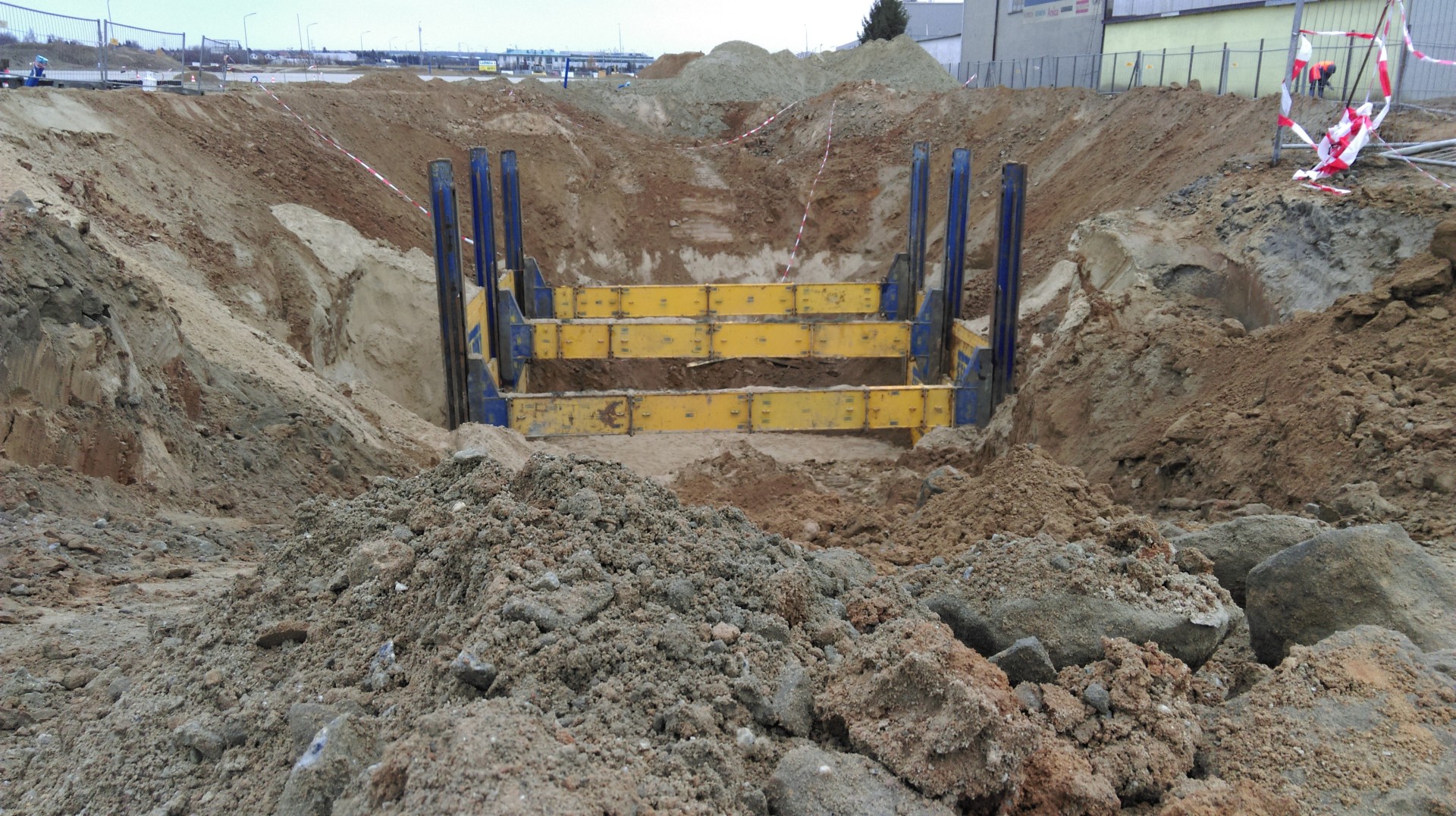 zobacz zdjęciaŚcisłe centrum Bydgoszczy, teren Urzędu Wojewódzkiego w Bydgoszczy, ograniczona ilość miejsca i manewrowania ciężkim sprzętem. W takich warunkach przyszło wykonawcy przeprowadzić renowację ciepłociągu. Zastosowanie pojedynczego systemu słupowego narożnego STALRENT SJR pozwoliło wyeliminować wibracje oraz ograniczyć użycie ciężkiego sprzętu. Dylowe ściany czołowe natomiast pozwoliły ominąć istniejący ciepłociąg a czterostronne szalowanie umożliwiło przeprowadzenie niezbędnych prac. Całe przedsięwzięcie zostało zrealizowane w terminie.