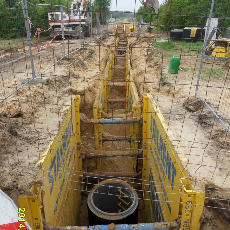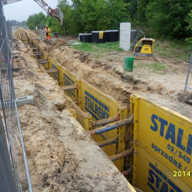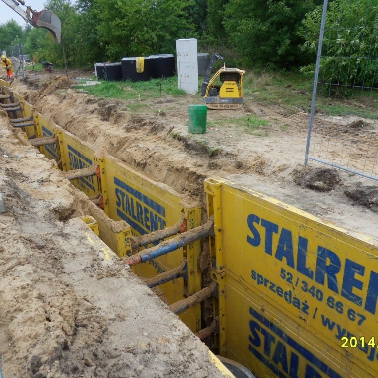 Budowa kanalizacji w kilku ulicach na jednym z osiedli Bełchatowa gdzie do zabezpieczenia wykopów wykorzystano szalunki z serii STALRENT STANDARDBOX SB 100 z nadstawkami, które dały możliwość zaszalowania wykopu o głębokości do 4 metrów. Poprzez zastosowanie rur przedłużających RP 1000 uzyskane światło wykopu 2,26 m dawało możliwość instalowania także studni. Generalny wykonawca jak i jego podwykonawcy wraz z każdym nowym otwarciem frontu robót mogli liczyć na nieprzerwaną dostępność oraz błyskawiczną realizację zamówień szalunków w firmie STALRENT.