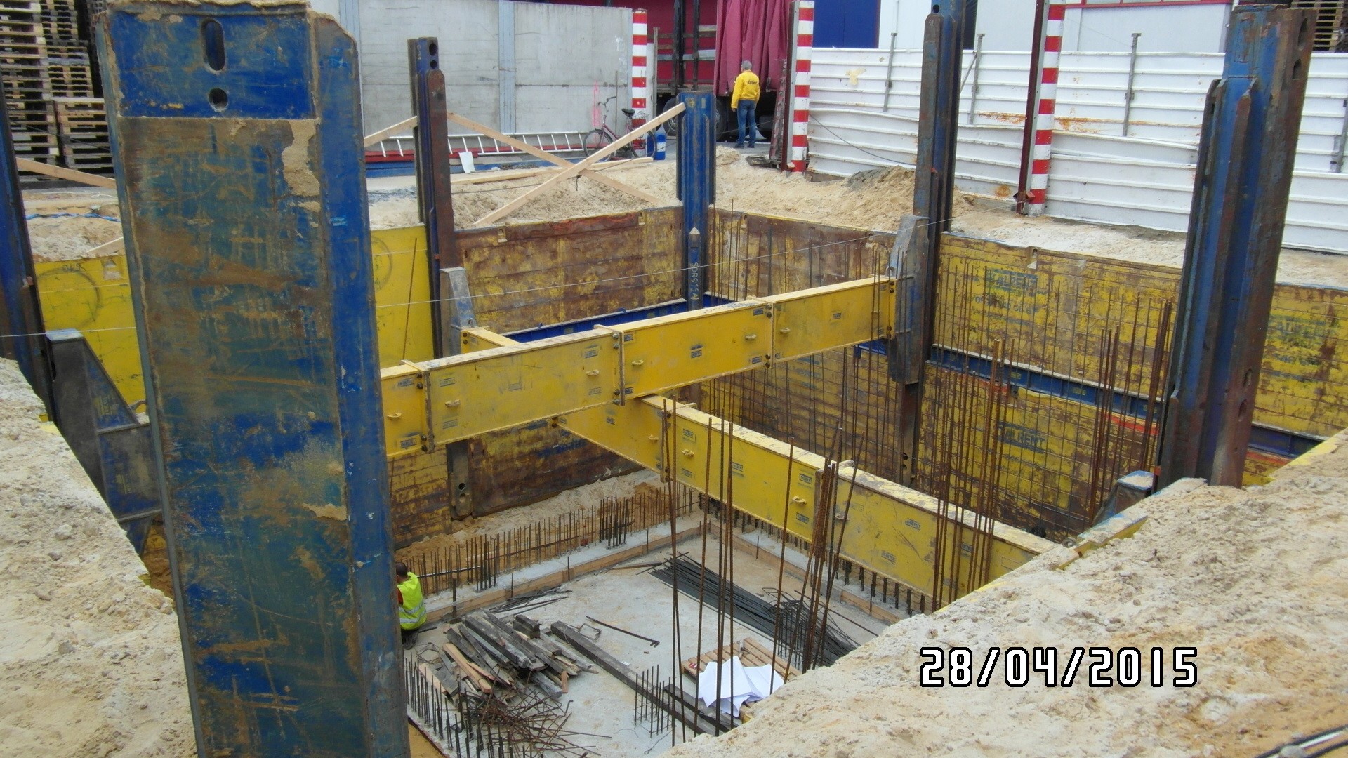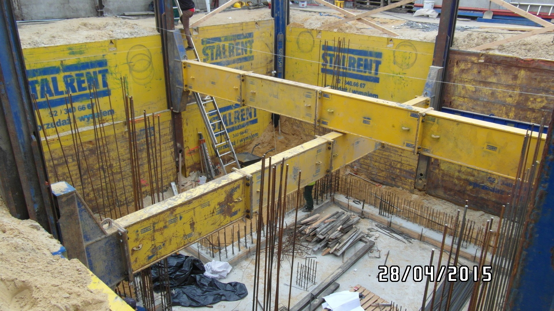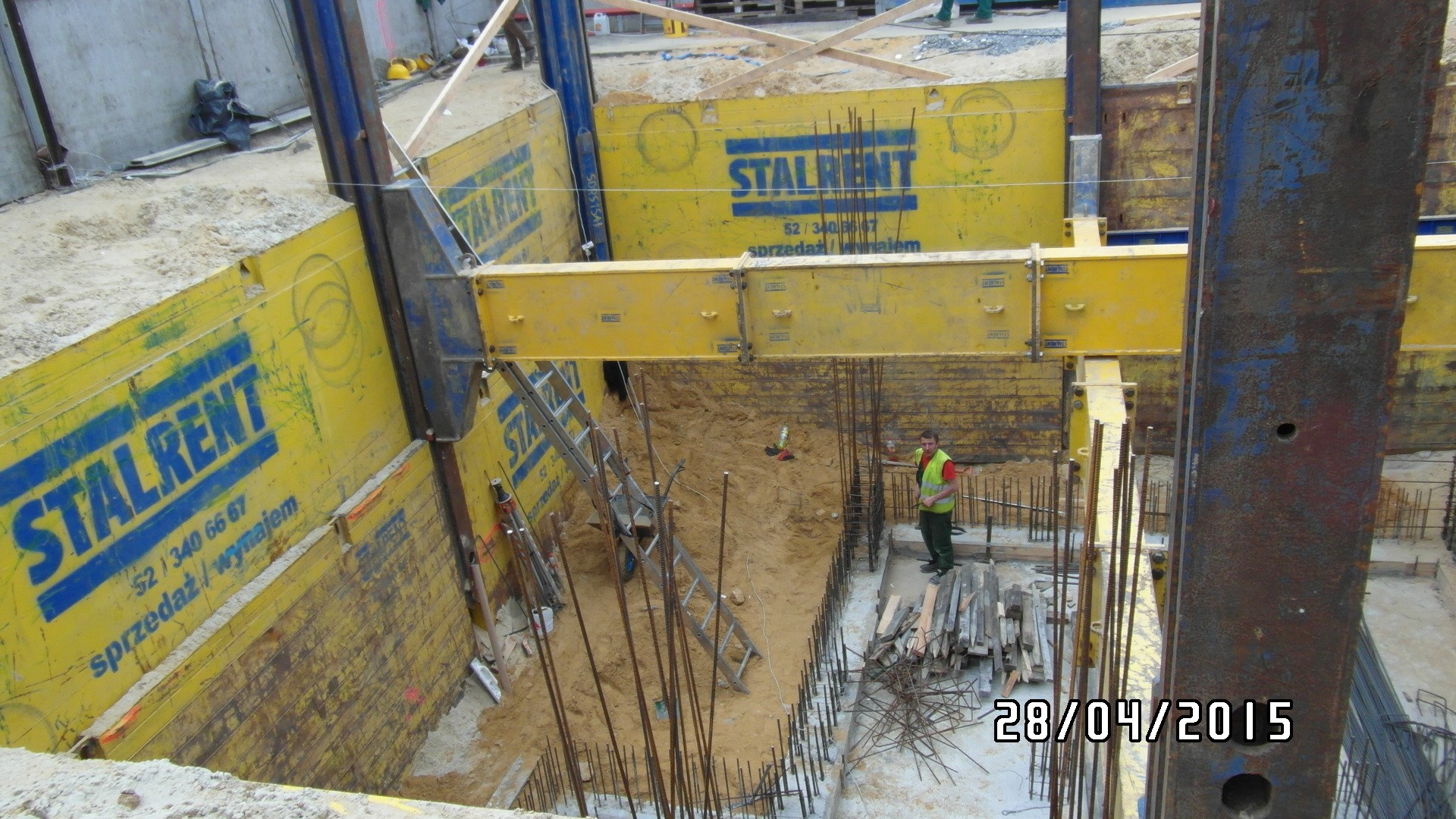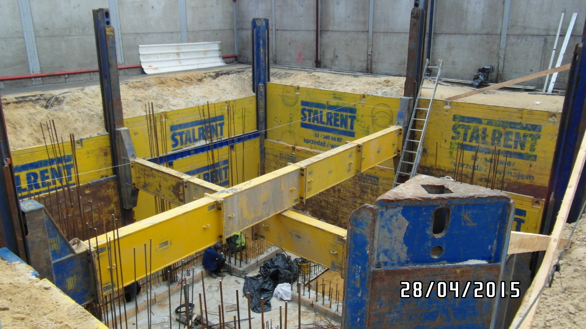 System słupowy liniowy SRR z wykorzystaniem słupów narożnych zastosowany przy modernizacji zakładu produkcyjnego branży spożywczej. Prezentowana realizacja miała na celu oszalowanie wykopu dla potrzeb wbudowania zbiornika na groszek spożywczy. Ograniczona ilość miejsca determinowała dopasowanie systemu w taki sposób aby projektowany zbiornik został zbudowany zgodnie z założeniem a jednocześnie całość inwestycji nie powodowała naruszenia istniejącej infrastruktury. Zastosowanie rozpór rolkowych nie tylko pozwoliło uzyskać żądane wymiary ale również umożliwiło swobodną budowę zbiornika już w szalowanym wykopie. Całość przedsięwzięcia została zrealizowana siłami własnymi inwestora przy wsparciu merytorycznym STALRENT co znacznie ograniczyło koszty oraz skróciło czas realizacji inwestycji.