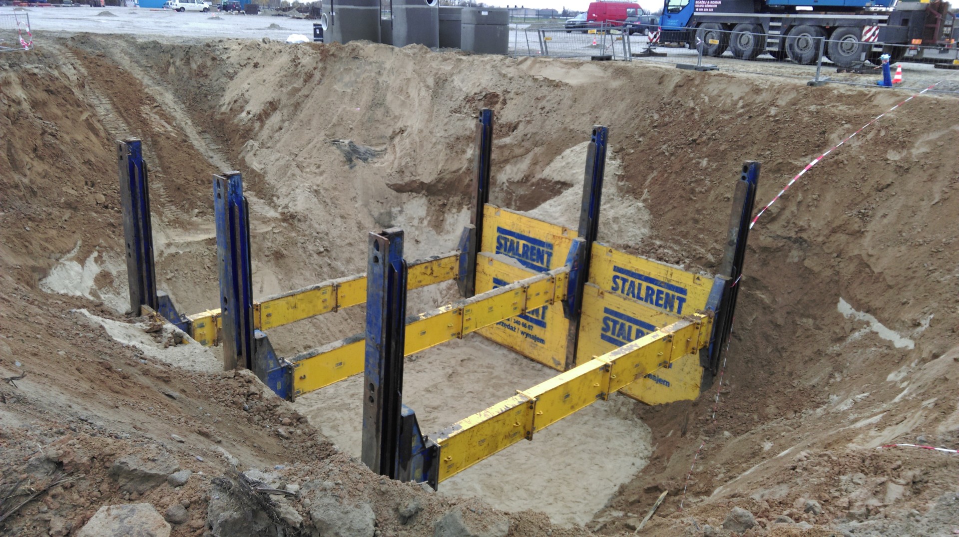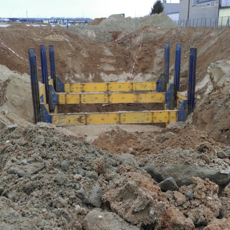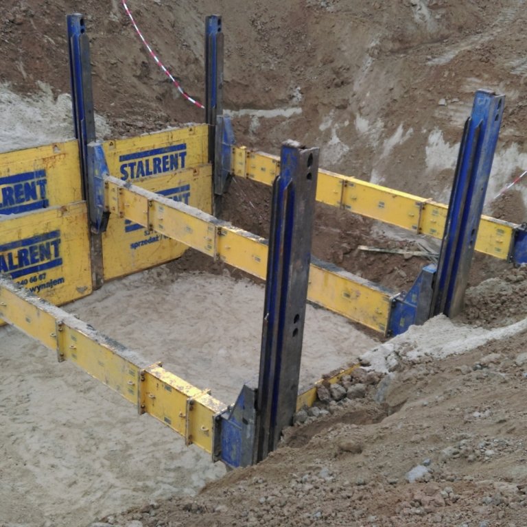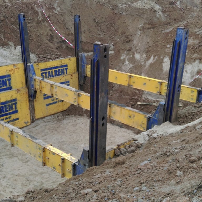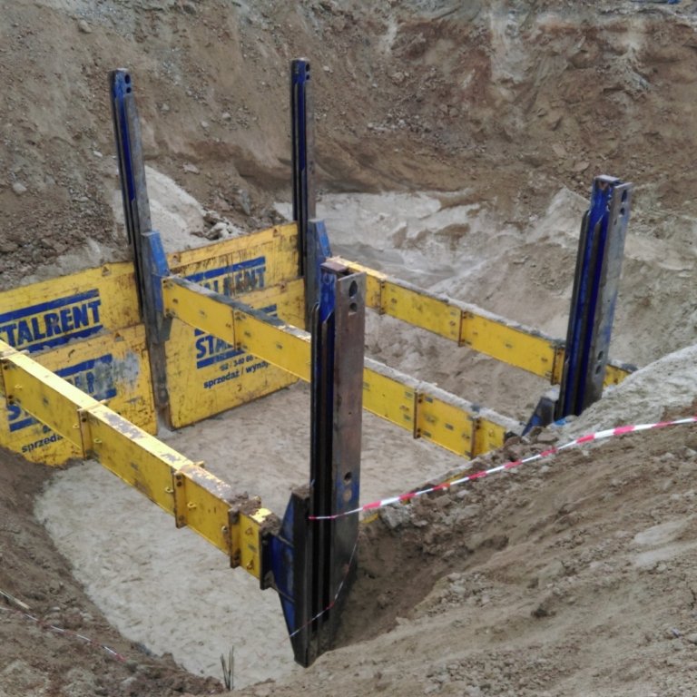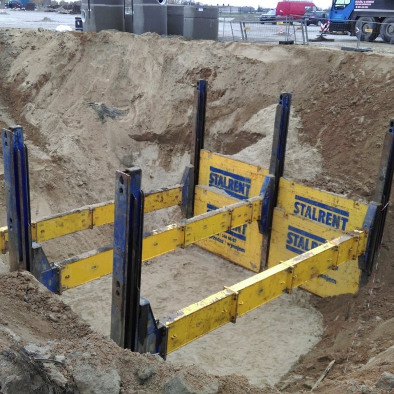 Budowa toru doskonalenia jazdy w okolicach Poznania. Zastosowany system składał się z dwóch pól o długości 3,5m i został dopasowany do elementów zbiornika montowanego dla potrzeb odwodnienia nawierzchni. System słupowy liniowy pozwolił uzyskać światło wykopu na poziomie 8,75m co umożliwiło sprawny montaż oraz uzbrojenie zbiornika przez producenta. Całość prac została wykonana w terminie dwóch tygodni.