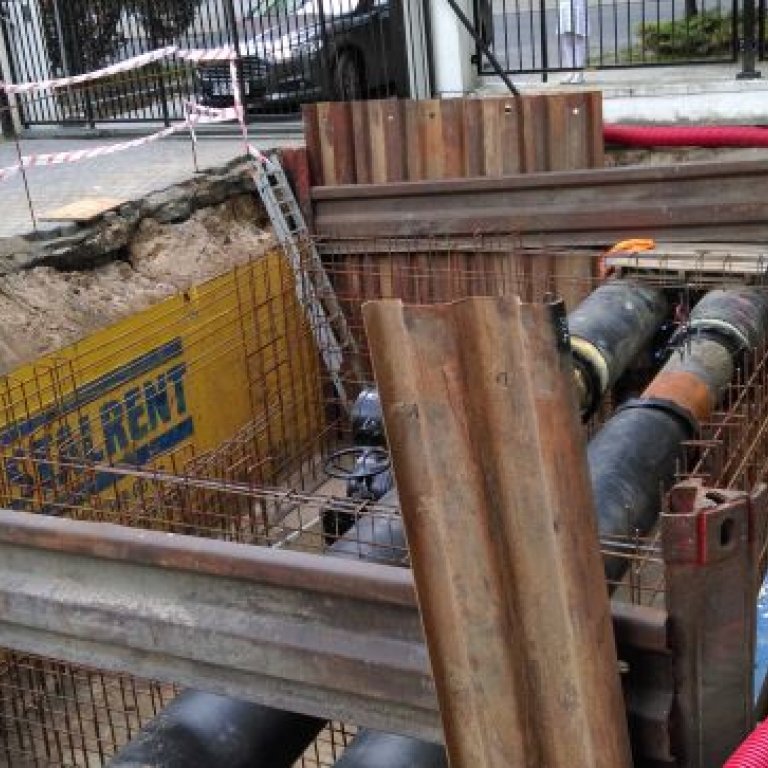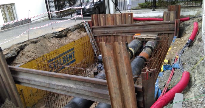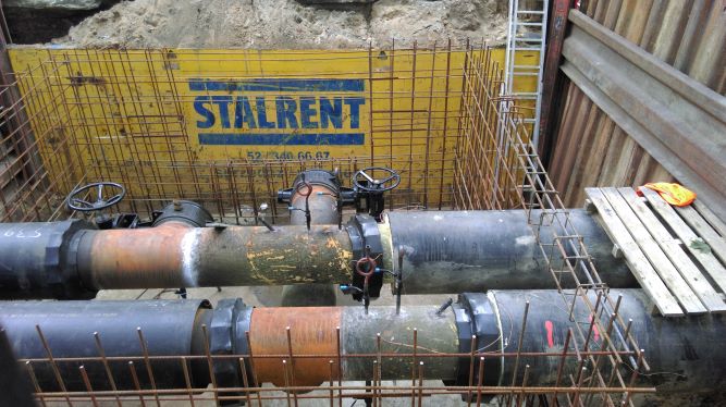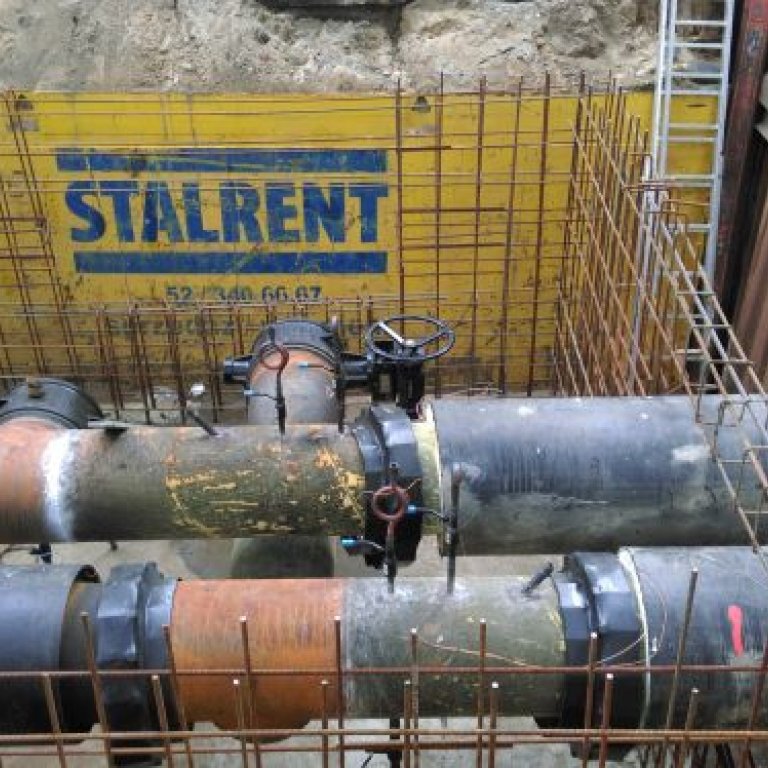 Ścisłe centrum Bydgoszczy, teren Urzędu Wojewódzkiego w Bydgoszczy, ograniczona ilość miejsca i manewrowania ciężkim sprzętem. W takich warunkach przyszło wykonawcy przeprowadzić renowację ciepłociągu. Zastosowanie pojedynczego systemu słupowego narożnego STALRENT SJR pozwoliło wyeliminować wibracje oraz ograniczyć użycie ciężkiego sprzętu. Dylowe ściany czołowe natomiast pozwoliły ominąć istniejący ciepłociąg a czterostronne szalowanie umożliwiło przeprowadzenie niezbędnych prac. Całe przedsięwzięcie zostało zrealizowane w terminie.