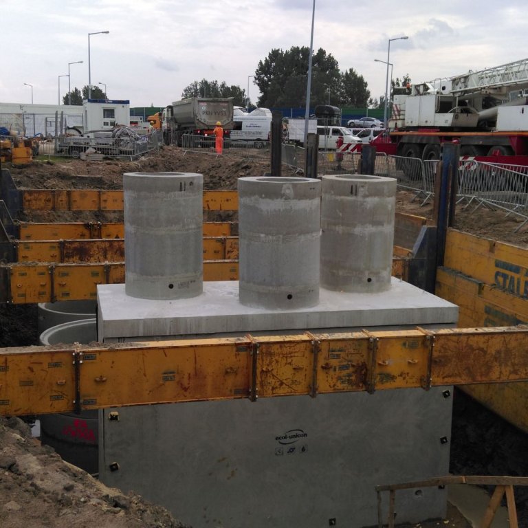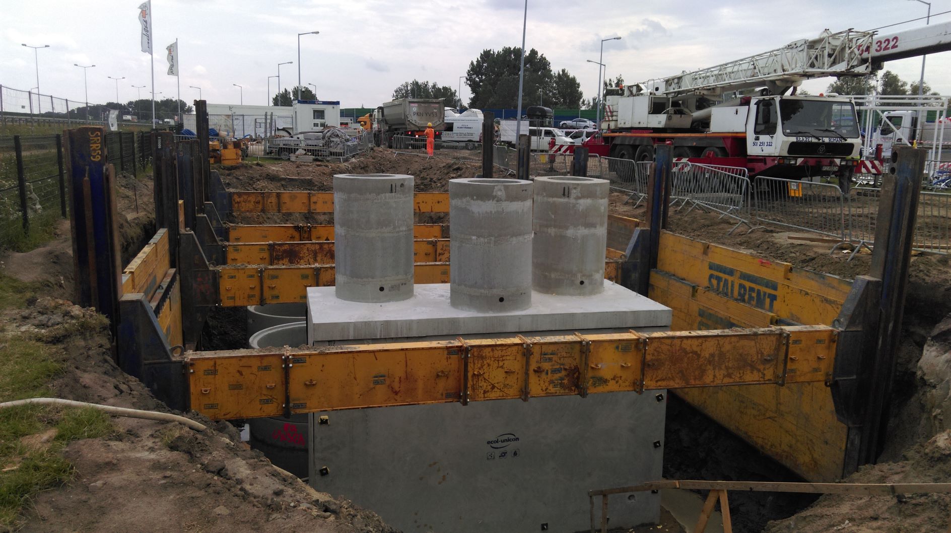 Jak osadzić dwa zbiorniki paliwowe oraz dodatkową infrastrukturę podziemną w sposób bezpieczny jednocześnie skracając czas realizacji inwestycji? Stosując liniowy system słupowy SRR „skrojony na miarę” odpowiadamy nie po raz pierwszy na tego typu pytania. Odpowiednie zaplanowanie długości poszczególnych pól systemu umożliwiło komfortowe osadzenie elementów infrastruktury podziemnej przy tym skracając czas realizacji. Niezaprzeczalnym atutem systemu było wykorzystanie jego elementów w kolejnym etapie osadzania zbiorników paliwowych. Całe przedsięwzięcie miało miejsce przy czynnej wówczas autostradzie A1 w okolicach Wrześni.