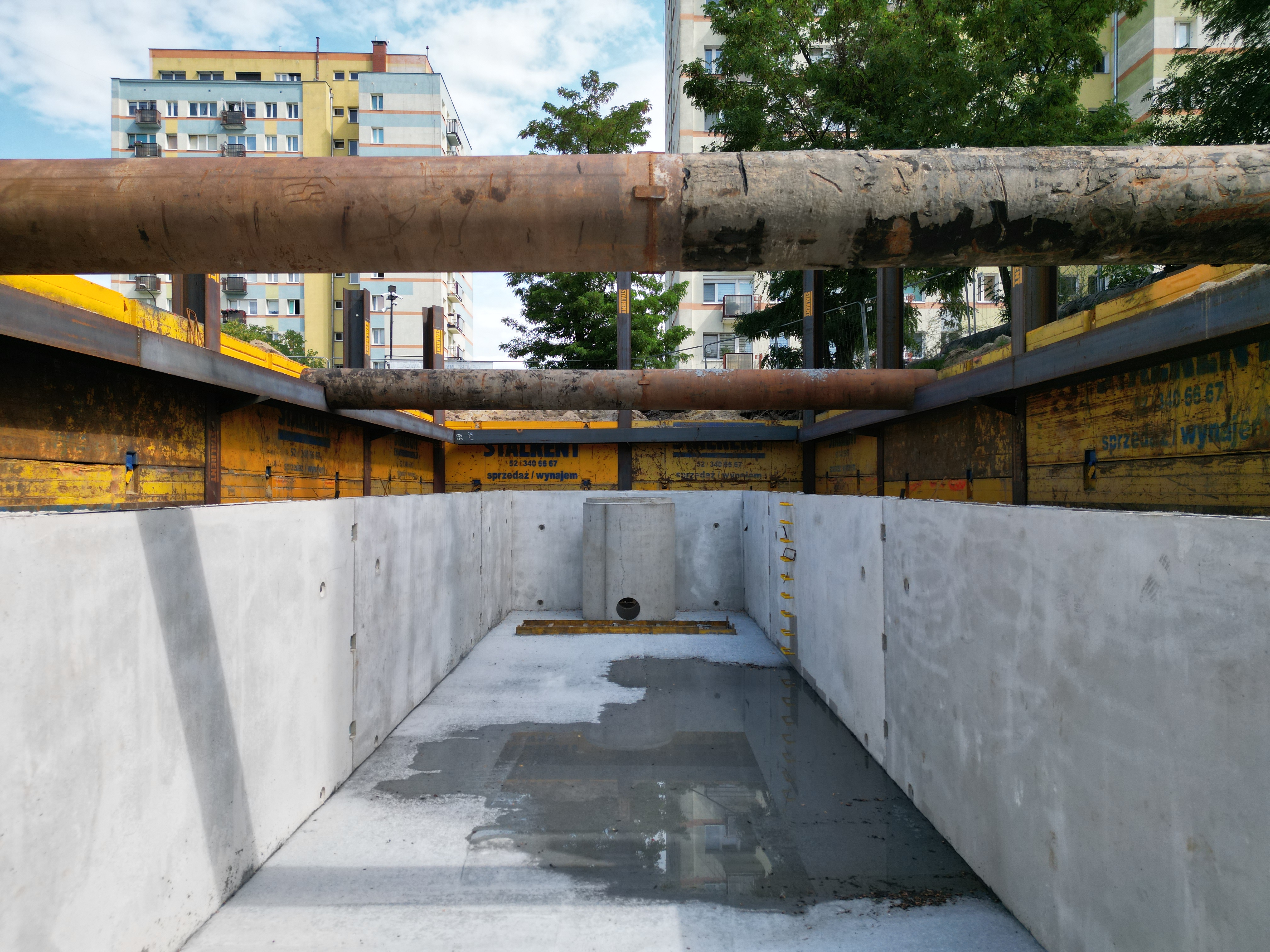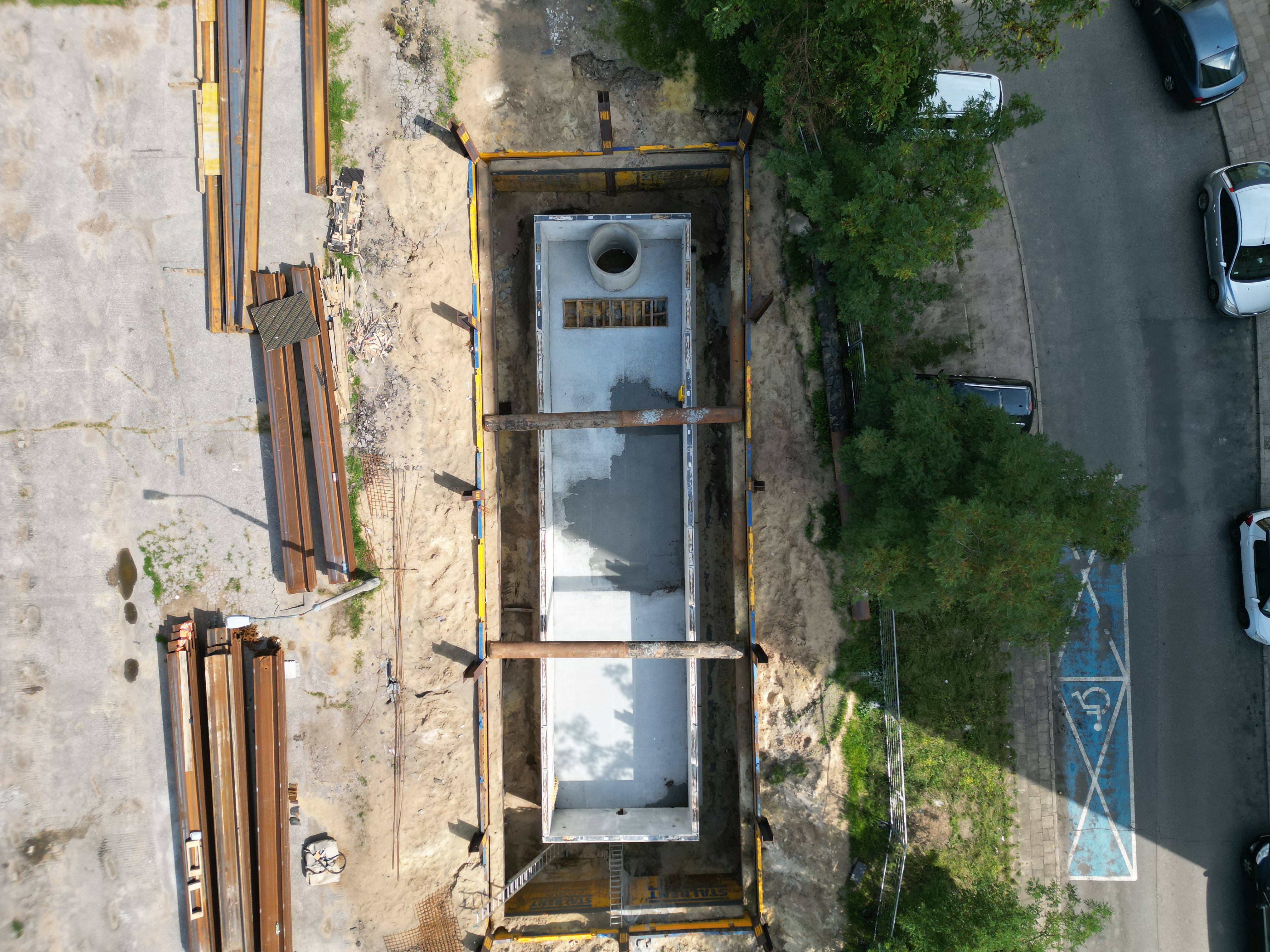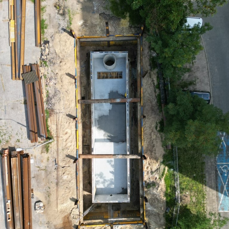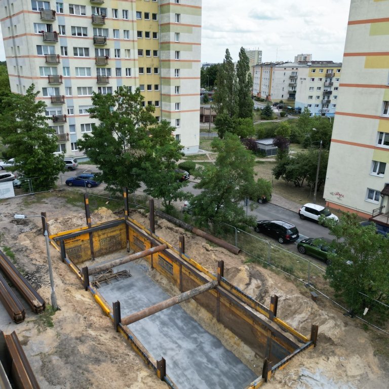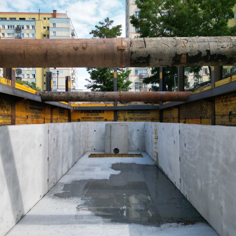 W ramach projektu „Budowa i przebudowa kanalizacji deszczowej oraz dostosowanie sieci do zmian klimatycznych na terenie miasta Bydgoszczy” realizowano prace przy ul. B. Śliwińskiego. Zakres obejmował rozbudowę sieci kanalizacji deszczowej oraz wykonanie nowego zbiornika retencyjnego. Do zabezpieczenia wykopu zastosowano ściankę płytową, stanowiącą połączenie dwuteowników HEB z płytami.