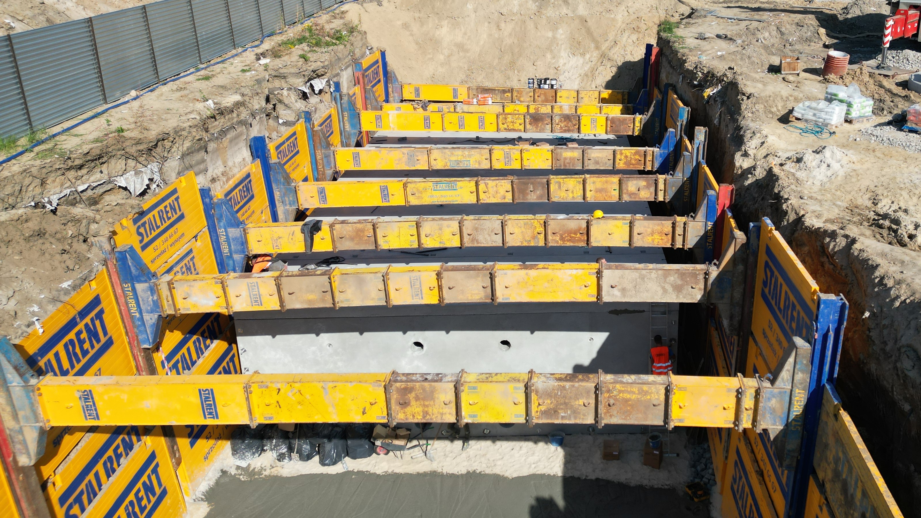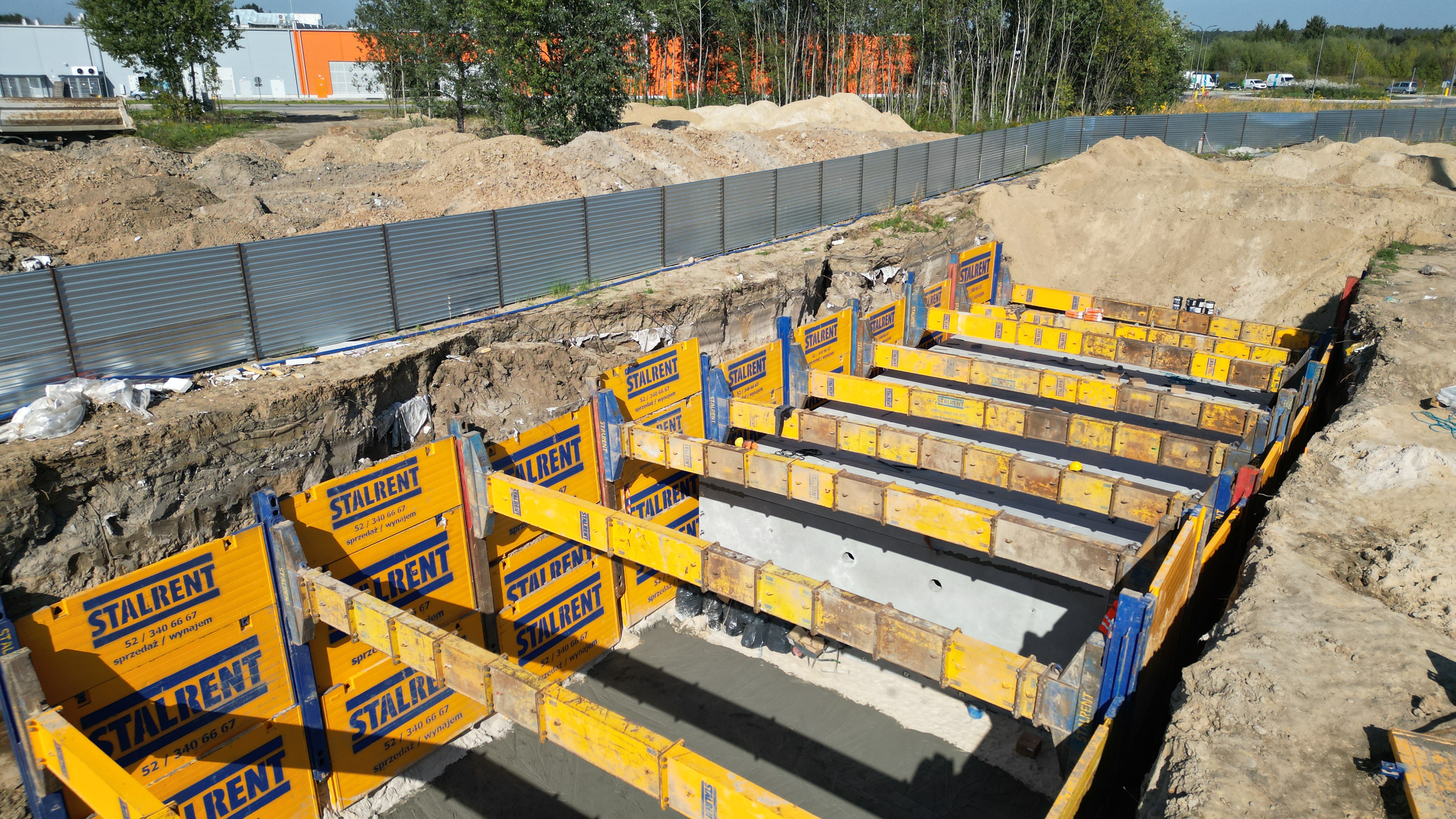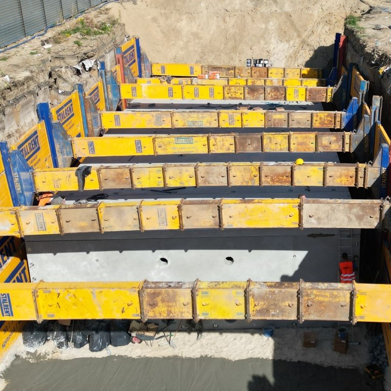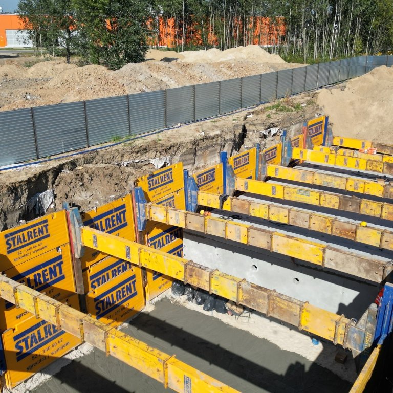 W jednej z warszawskich realizacji zastosowano system SRR do zabezpieczenia wykopu o imponujących wymiarach: aż 40 m długości, 11,5 m szerokości oraz 6,2 m głębokości. Tak duża skala wykopu wymagała precyzyjnego planowania oraz odpowiedniego doboru technologii, co pozwoliło na sprawną i kontrolowaną realizację zadania.